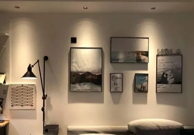 墻面局部照明:安裝可調角度的軌道射燈提供照明,突出墻面裝飾品。