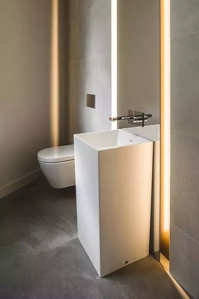 盥洗臺局部照明:在鏡前區兩邊或四周安裝射燈或燈帶,便于梳洗。