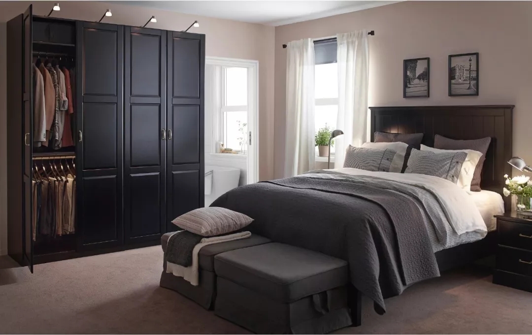 枕邊局部照明:床頭距地約1.8m的兩段墻壁,安裝不占空間的壁燈/吊燈,或設置床頭柜臺燈、落地燈。
