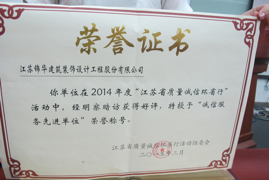江蘇省住宅裝修放心消費(fèi)優(yōu)質(zhì)企業(yè)