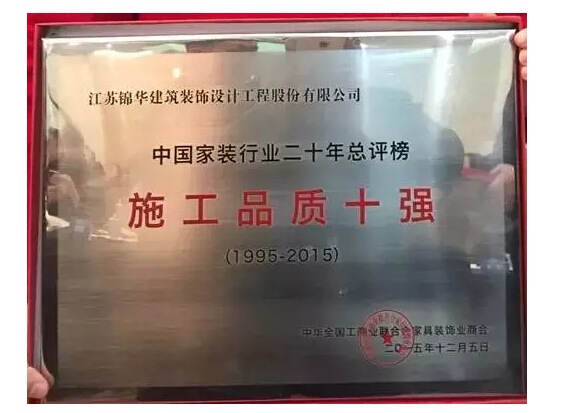 中國(guó)家裝行業(yè)二十年總評(píng)榜施工品質(zhì)十強(qiáng)