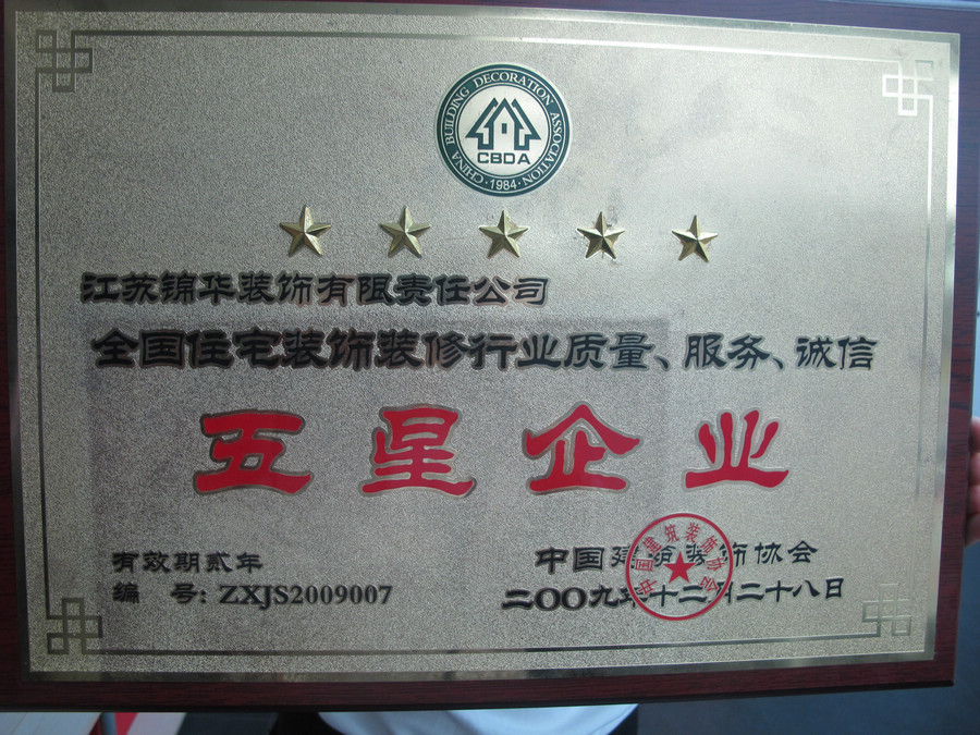 住宅裝飾裝修行業(yè)質(zhì)量、服務(wù)、誠(chéng)信五星企業(yè)