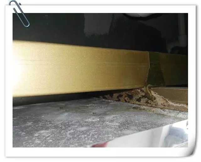 我們用吸盤拆開扣板后發現,扣板上殘留許多水,經過檢查,水管檢修口老化松動導致漏水,水源慢慢擴散到房屋各個角落,導致衛生間附近的墻紙門套均發霉,而客戶一直以為是空氣濕度大的原因。