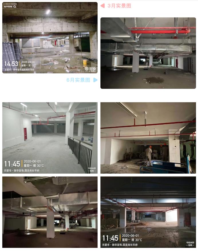 地下車庫與3月相比,已經(jīng)全部刷上了膩?zhàn)訉?,而且目前頂部已?jīng)安裝通風(fēng)設(shè)備。