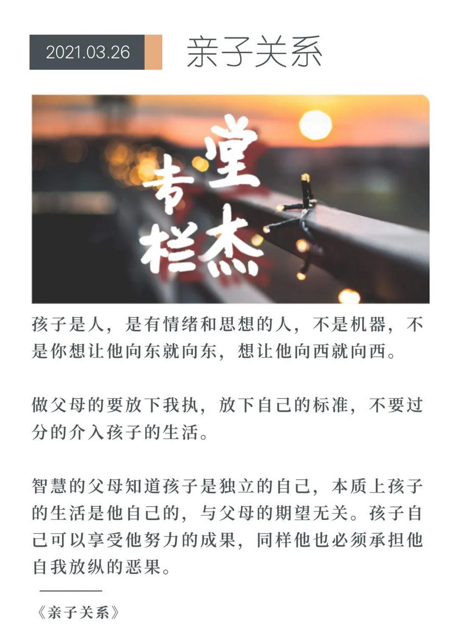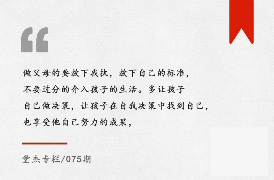 所以,做父母的要放下我執(zhí),放下自己的標準,不要過分的介入孩子的生活: