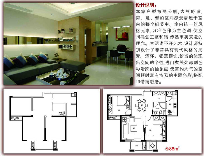 主案設計理念:設計是一種有文化的生活方式,用心感悟生活,讓空間、色彩、設計回歸自然 。...