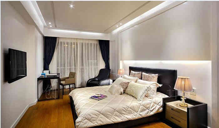 歐式家居的臥室布置較為溫馨,作為主人的私密空間,主要以功能性和實用舒適為考慮的重點,多用溫馨柔軟的成套布藝來裝點,同時在軟裝和用色上非常統一。