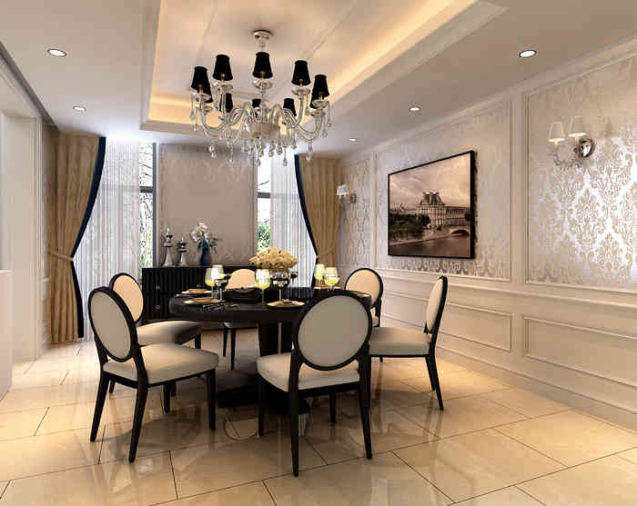 少了富麗堂皇的裝飾和濃烈的色彩,呈現(xiàn)的則是一片清新,典雅和大氣并存的輕松空間。肌理的電視背景墻,明亮素實(shí)的窗簾,和古典色彩的地毯相呼應(yīng)的吊燈,加上造型簡(jiǎn)潔大方的沙發(fā)構(gòu)成了一個(gè)典型的歐洲世界,送給心靈一次歐洲的游歷。素色的墻紙、明亮的天花在深色地板的映襯下營(yíng)造的是痛快、利落、干凈的氛圍。吊燈,壁燈,和吊頂筒燈帶來的光源效果讓就餐的氣氛溫馨了許多。