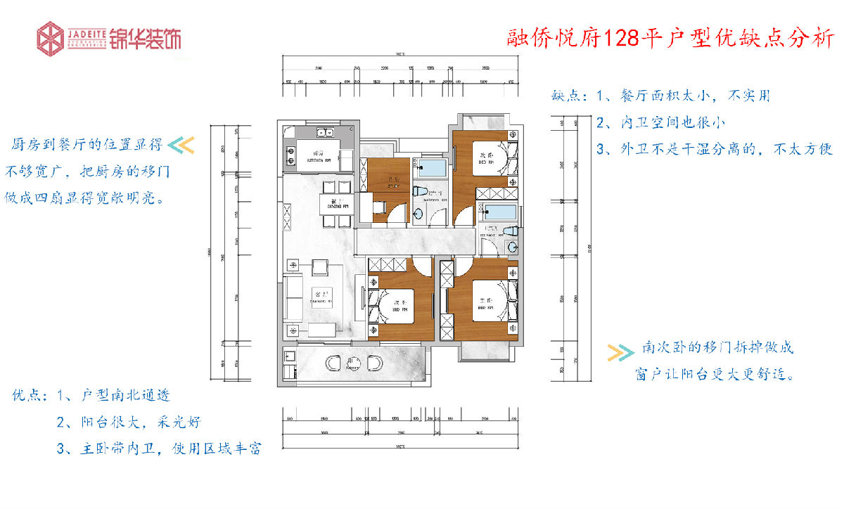 缺點:1、餐廳面積太小,不使用